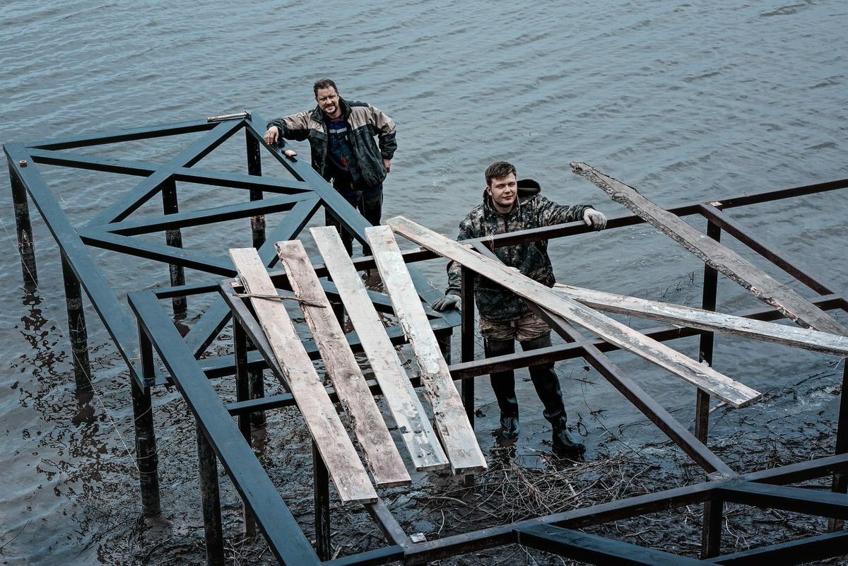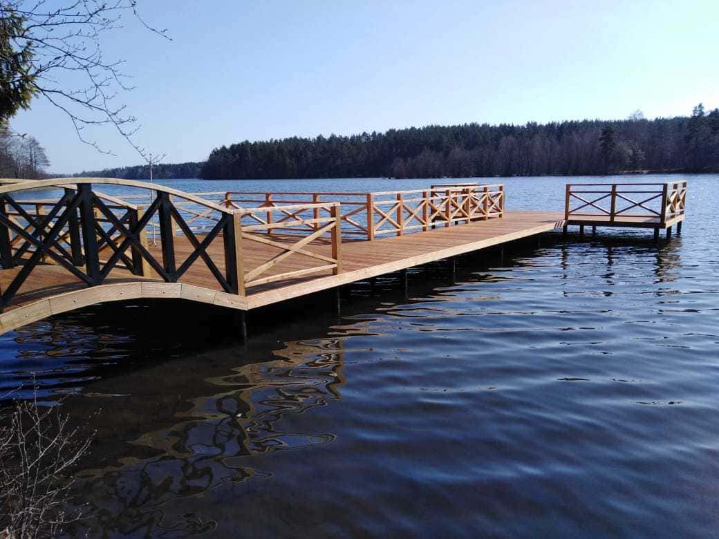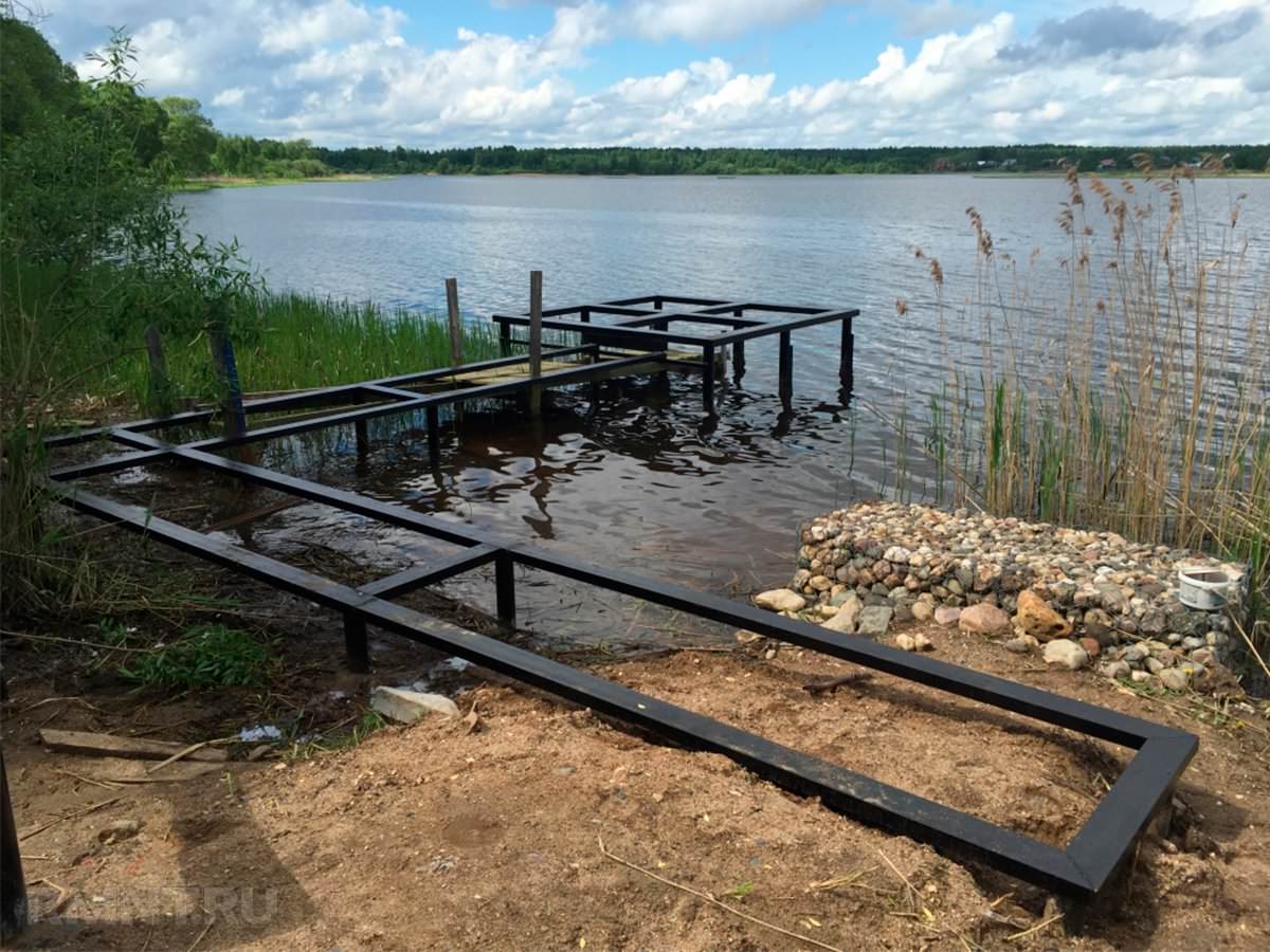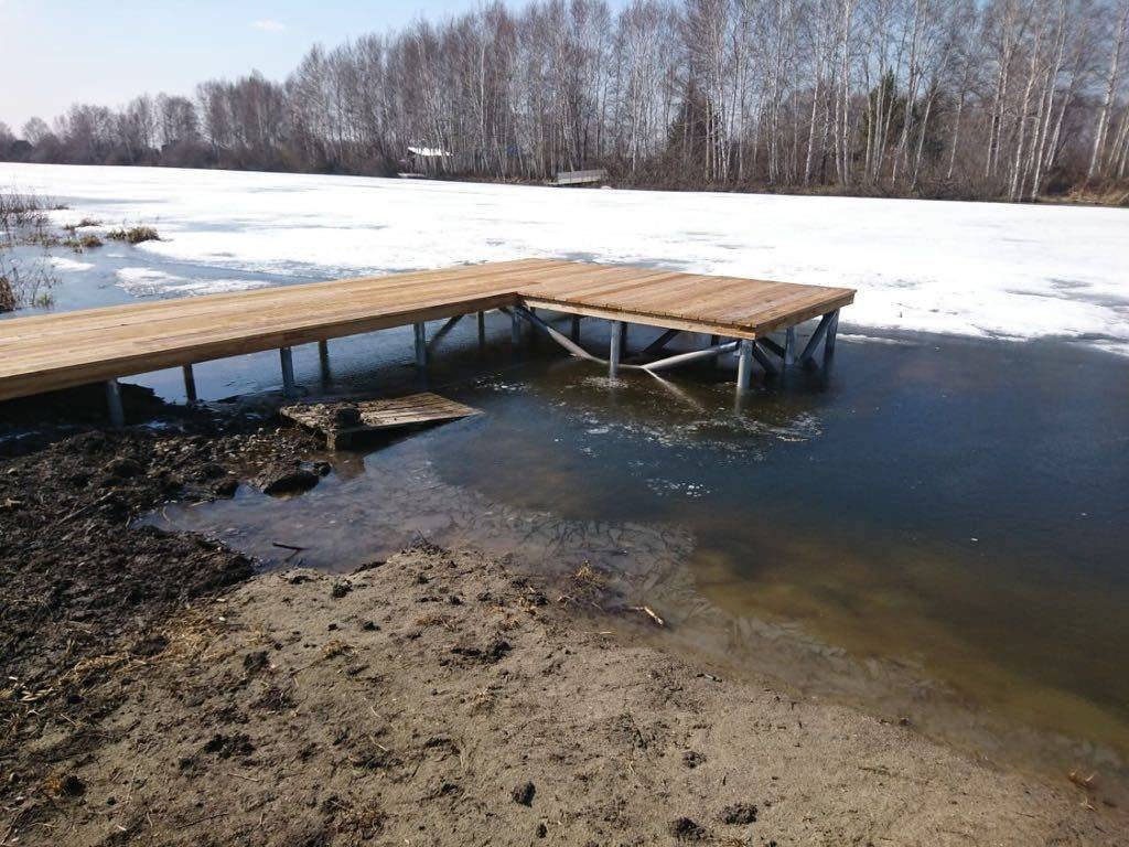 Свайный фундамент – оптимальное решение для возведения пирса на участке с резким перепадом рельефа. Уровень свайного поля выводится в ноль за счёт использования винтов разной длины.